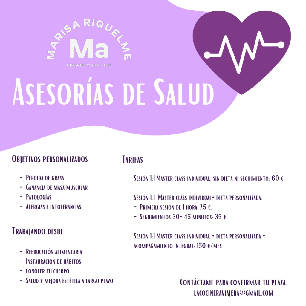 Aquí puedes ver mis servicios: los tipos de asesorías nutricionales y de salud que hago, qué abordo en cada uno de ellos y cómo puedo ayudarte y por cuánto.