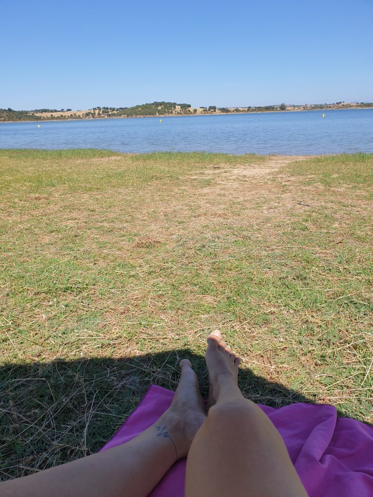 De dirigí a la playa de Cheles. Sin duda el camino desde Zafra para ir ahí únicamente, y como me fui yo, sin gafas de buceo y sin el libro que me había llevado en la maleta para leer si tenía algún rato como éste, y que me había dejado en casa de Álex, pues se me hizo un poco aburrido. No por la playa, ni mucho menos, estaba genial. El problema soy yo, que si estoy sola me gusta estar haciendo algo, leer, bucear y ver peces, pero claro, no podía hacer ni lo uno ni lo otro, ni tenía cobertura para ponerme un podcast o similar.